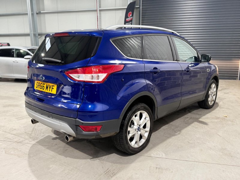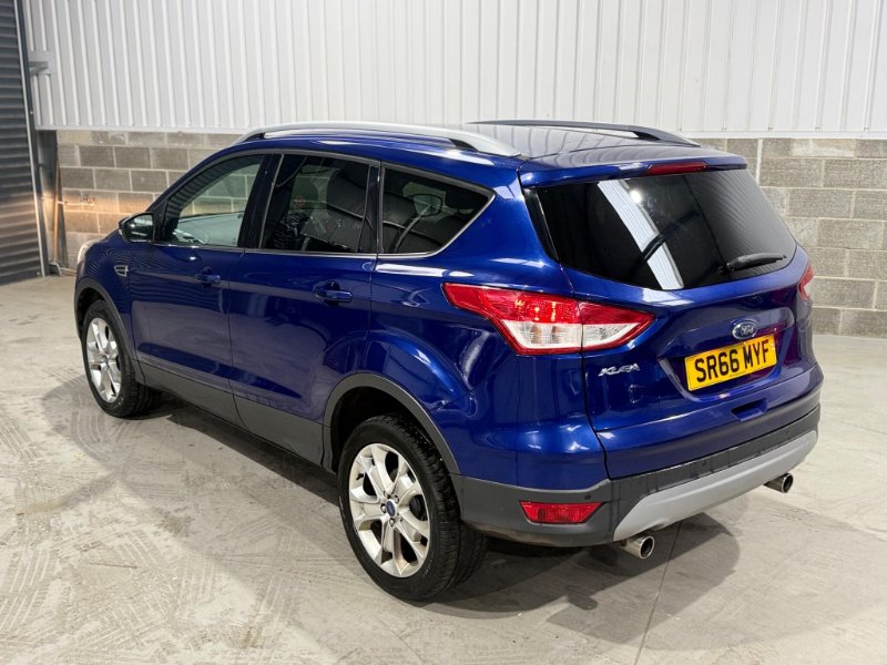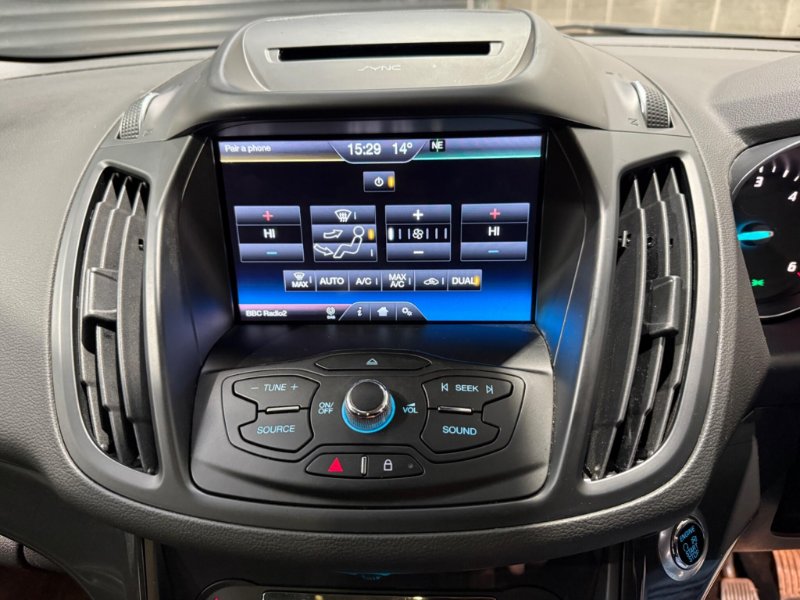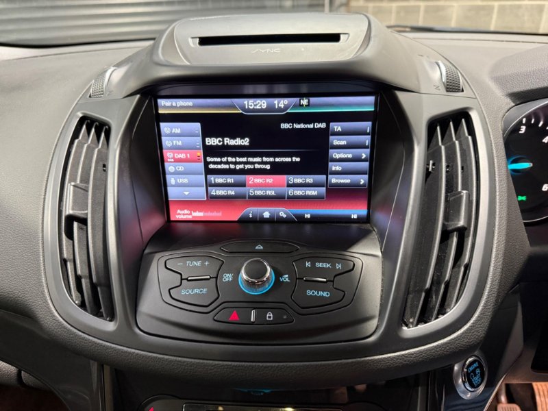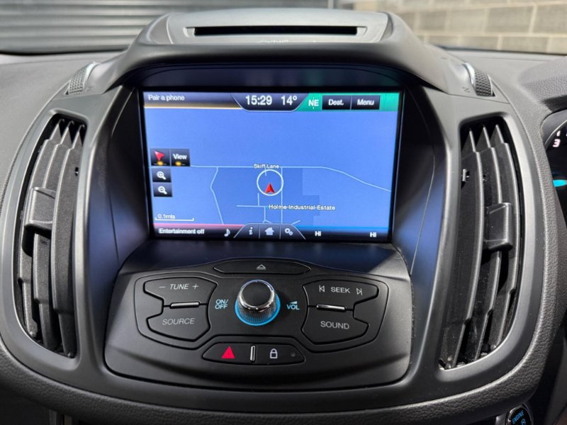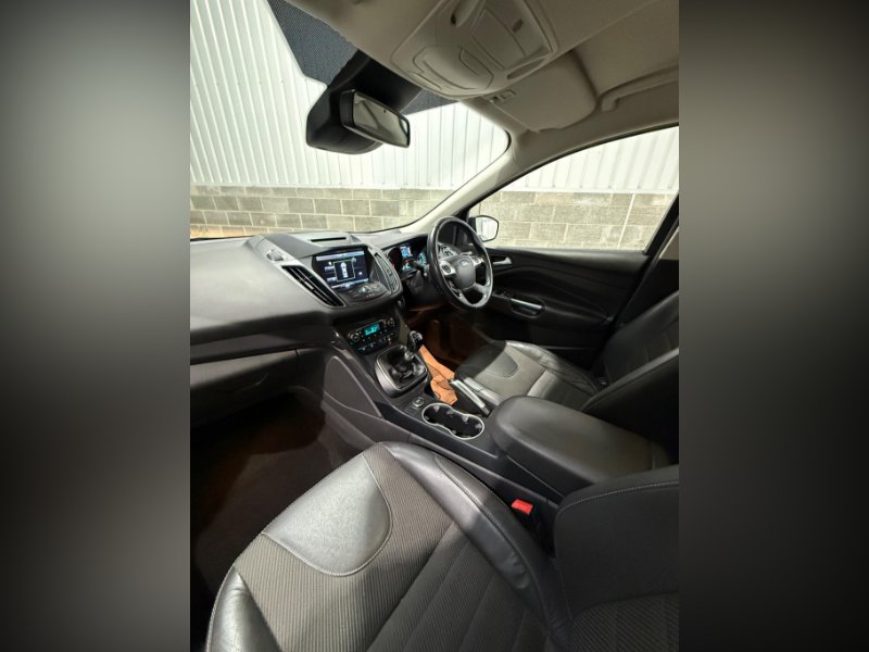 This 2016 Ford Kuga TDCi Titanium boasts a full service history and has had only one owner from new, ensuring excellent provenance. It features a robust 2.0L Diesel engine paired with Four Wheel Drive for confident handling in various conditions, and meets Euro 6 emissions standards. Inside, you'll find a Premium Ford DAB Navigation System with Ford SYNC3, offering Bluetooth connectivity and rear camera parking assistance. Comfort is assured with Dual-Zone Electronic Automatic Temperature Control, and convenience is enhanced by keyless entry and automatic halogen headlights with LED daytime running lights.