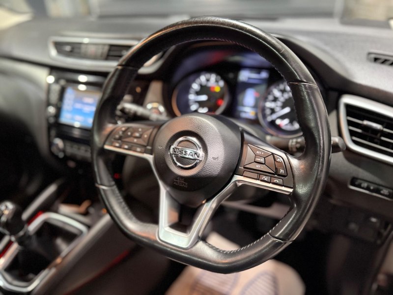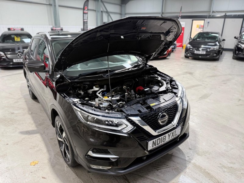 Boasting a single owner and remarkably low mileage for its age, this 2018 Nissan Qashqai DIG T Tekna presents a compelling proposition. With only 51,316 miles on the clock, this Euro 6 compliant 1.2 litre petrol model comes with a clear vehicle history check and a 6 month warranty for your peace of mind. The Tekna trim level is enhanced by the desirable Glass Roof Pack, featuring a fixed panoramic sunroof, and the Intelligent Around View Monitor which provides a 360 degree camera for effortless parking assistance. Inside, you'll find a Bose 8 speaker premium audio system for an immersive sound experience, alongside the Heat Pack for cosy journeys with heated seats, and the Tech Pack which includes rear camera parking assistance.